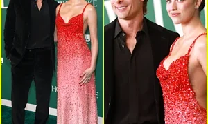 Just Jared. Glen Powell e Margaret Qualley façam uma pose juntos na estreia de seu novo filme em Los…