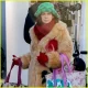 Carrie Preston combina casaco de pele com chapéu verde enquanto filma…