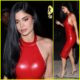 Kylie Jenner festeja com vestido vermelho quente na OBB Media Holiday…