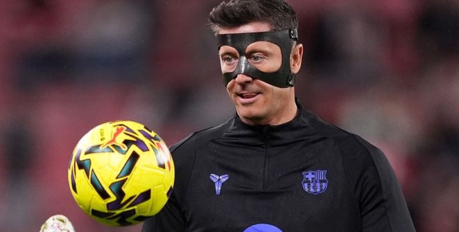 Por que Robert Lewandowski está usando máscara no confronto do Barcelona na La Liga com…