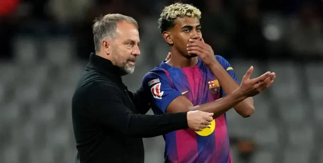 O técnico do Barcelona, ​​​​Flick, esclarece a lesão de Lamine Yamal após o gol contra…