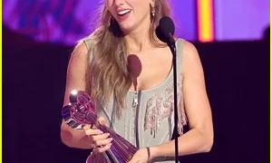 Just Jared. Taylor Swift deu ao noivo Travis Kelce uma mensagem ao aceitar sua primeira vitória da noite no…